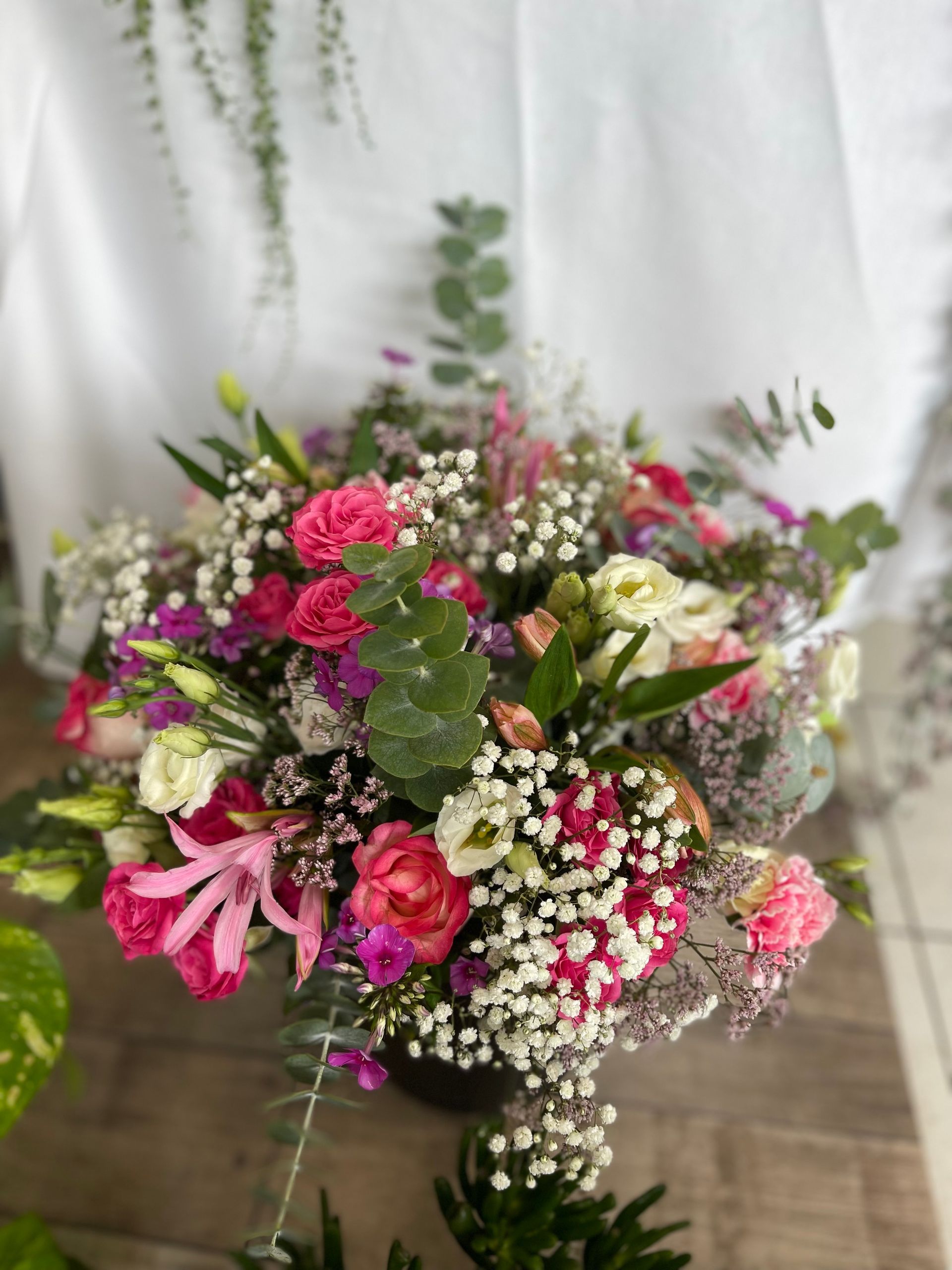 Bouquet de fleurs variées avec de la nérine (disponible toute l'année)