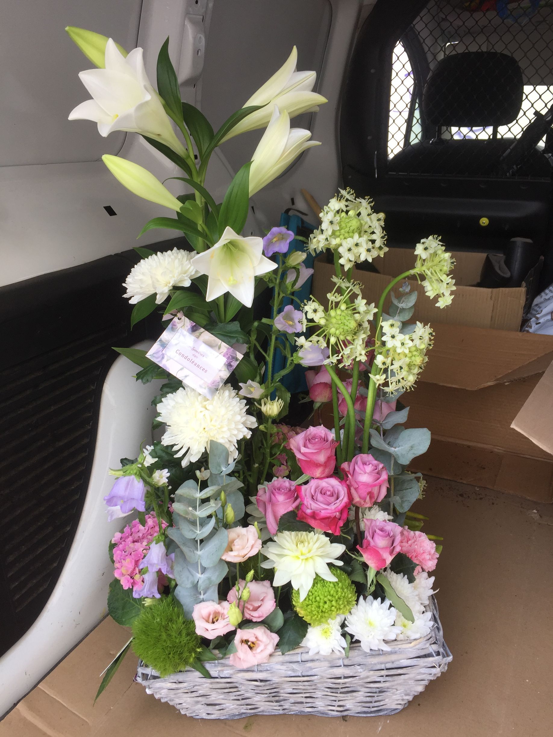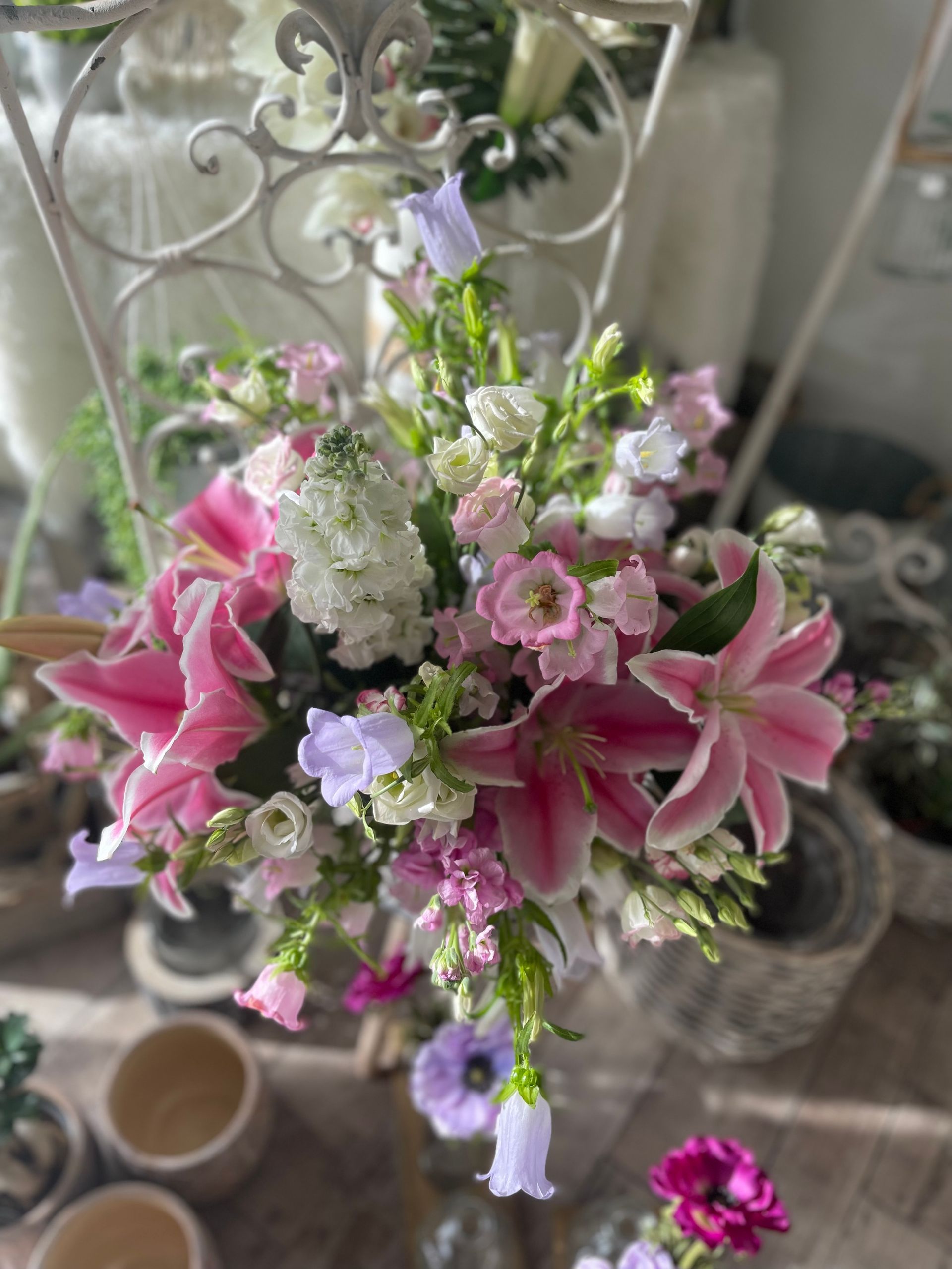 Bouquet de lys, giroflées et campanules (disponible toute l'année)