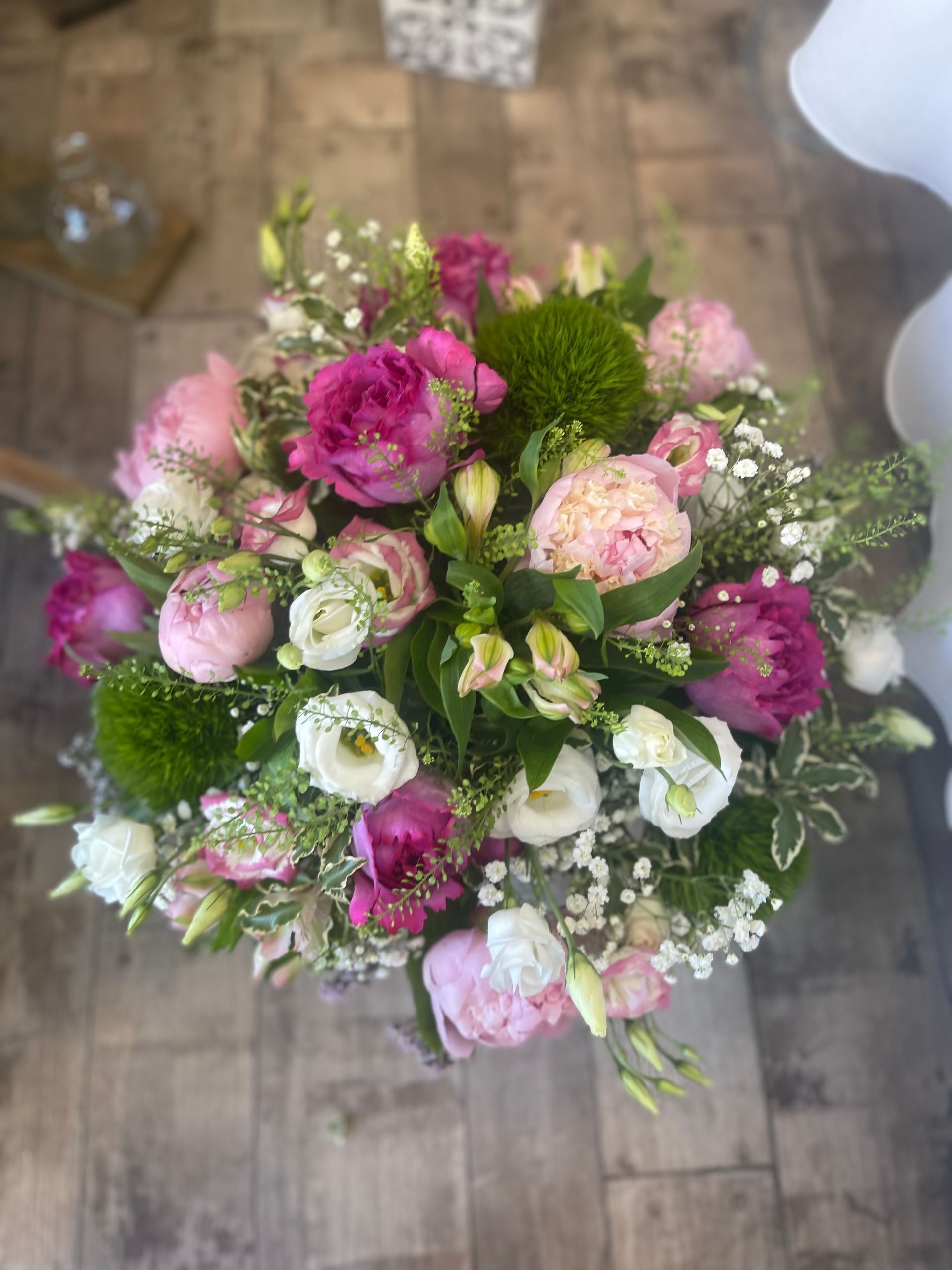 Bouquet de pivoines et roses odorantes (disponible d'avril à juin) Pensez à commander
