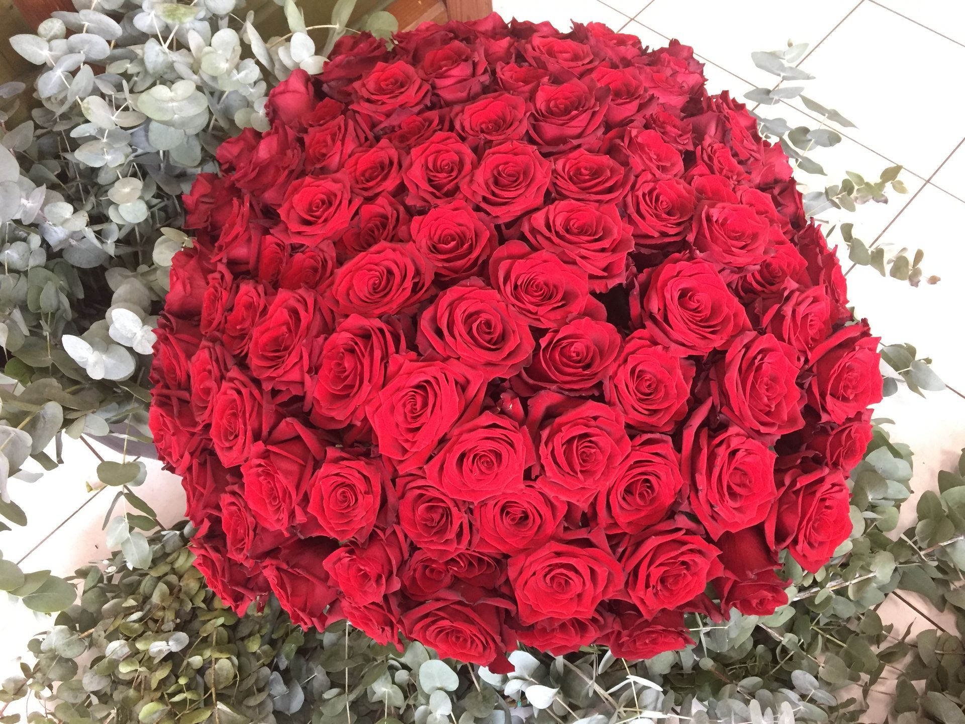 Bouquet de 101 roses rouges, pour faire preuve d'un amour sans limite et infini. (disponible toute l'année sur commande)